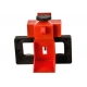 a.Made from rugged polypropylene PP and impact modified PA.b.Use thumbscrew to clamp lockout securely onto switch tongue, then pull cover and lock in place to prevent clamp from being loosened.c.New blade design provides tighter grip with less torque on thumb screw.d.Detachable cleats expand the range of applicable breakers.e.The lockouts can take padlocks with a shackle diameter up to 7mm.